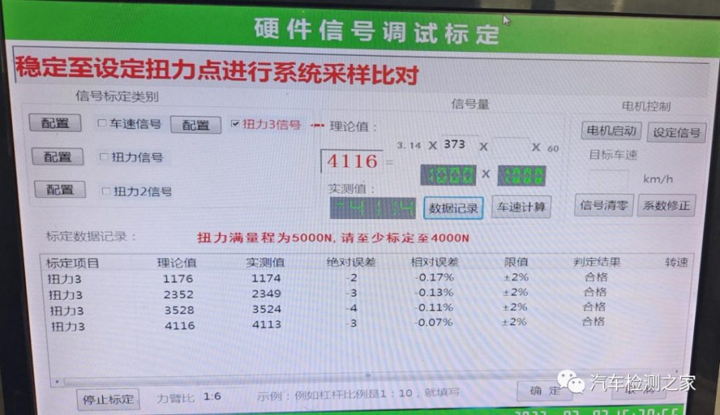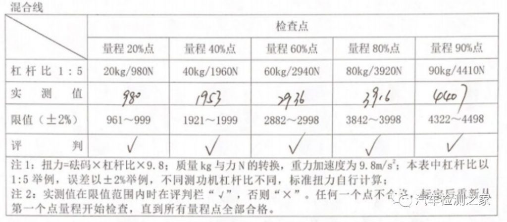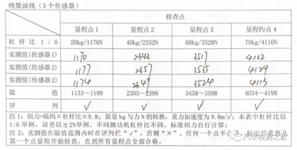 按照標準要求進行下表的3組數(shù)據(jù)測試,記錄偏差,并進行判斷。