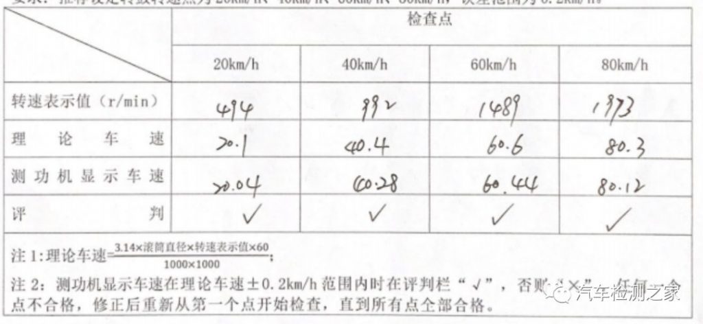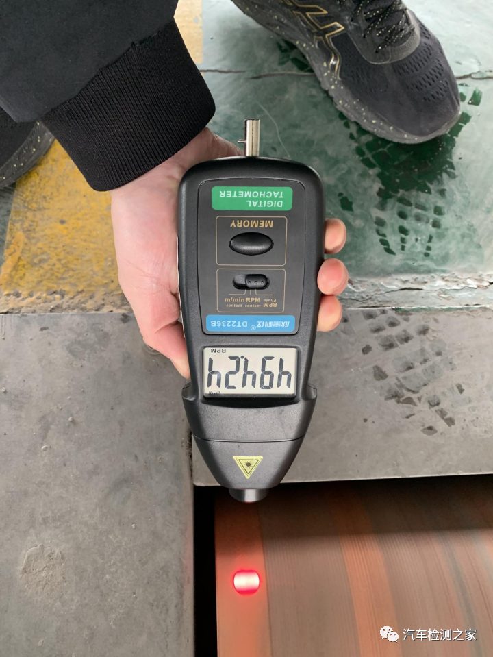 方法:在滾筒上粘貼反光塊,使用校準過且在有效期的轉(zhuǎn)速表測量滾筒轉(zhuǎn)速,再計算實際車速。要求:推薦設(shè)定轉(zhuǎn)鼓轉(zhuǎn)速點為20km/h、40km/h、60km/h、80km/h,誤差范圍為0.2km/h。