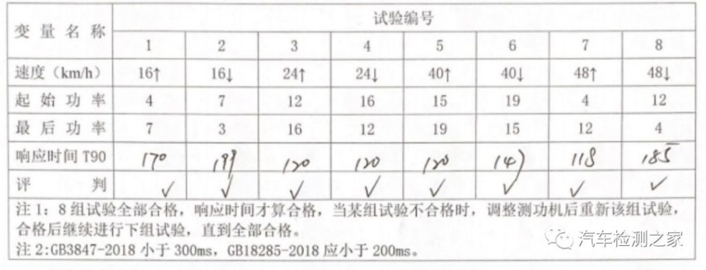 進行如下表的8組測試,測試扭矩階躍變化的響應(yīng)達到90%。