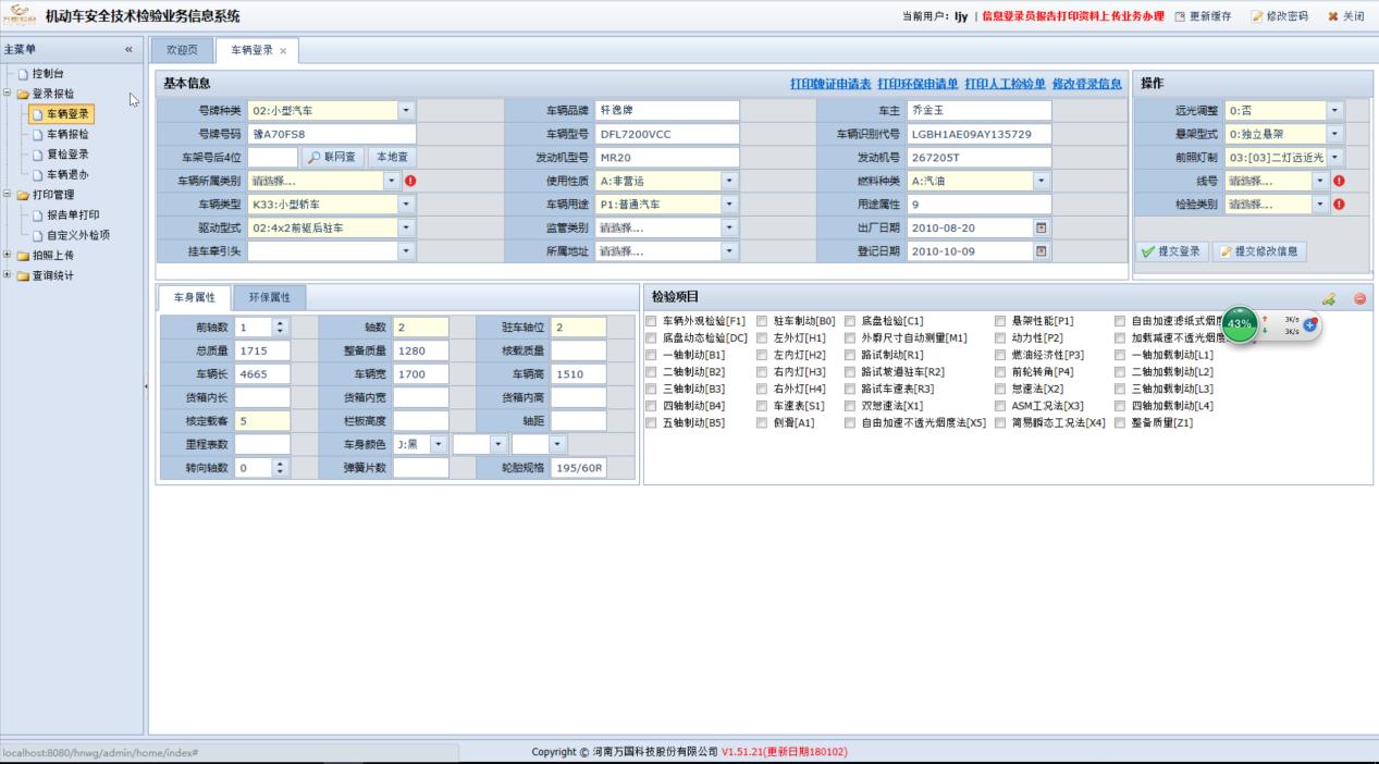 車輛唯一性、車輛特征、車輛外觀檢查、安全裝置、底盤動(dòng)態(tài)檢驗(yàn)、車輛底盤部件、制動(dòng)力、燈光、車速表指示誤差、轉(zhuǎn)向輪橫向側(cè)滑量、路試制動(dòng)性能、動(dòng)態(tài)輪荷、車輛外廓尺寸、整備質(zhì)量